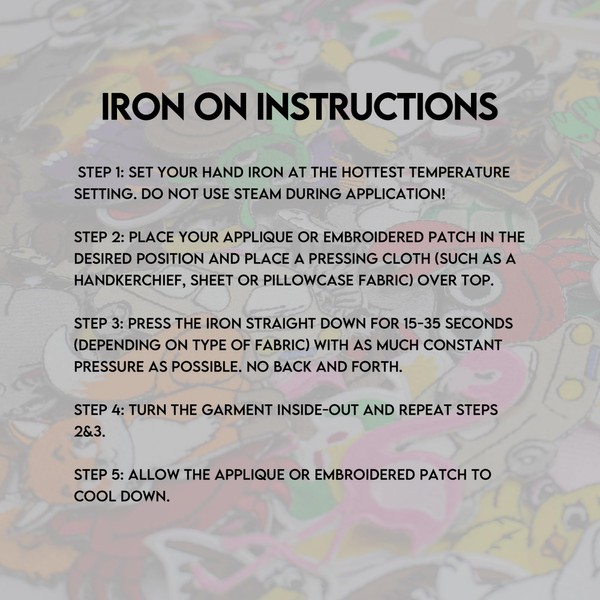 - Heat Seal Backing Iron on sew to any garment
