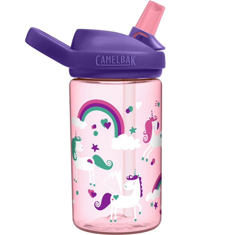 CamelBak Eddy+ Botella de agua para niños de 14 onzas con Tritan Renew, parte superior de popote, a prueba de fugas cuando está cerrada, unicornios