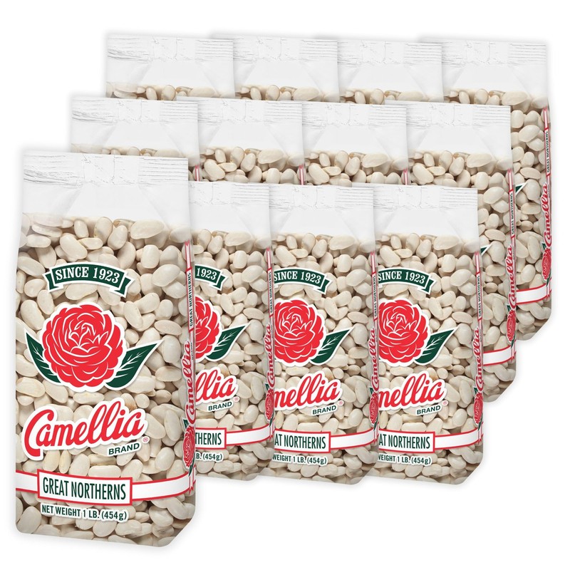 Camellia Brand Dried Great Northern Beans – Premium White Beans for Soups, Stews, Casseroles & Side Dishes – Non-GMO, Gluten-Free, High Protein, Vegan & Vegetarian Friendly, 1 Pound (Pack of 12)