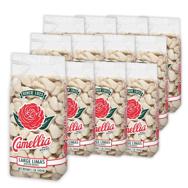 Camellia Brand Dried Large Lima Beans – Premium White Butter Beans for Southern Cooking, Soups, Stews & Casseroles – Non-GMO, Gluten-Free, Vegan, Vegetarian, High Protein, High Fiber, 1 Pound (Pack of 12)
