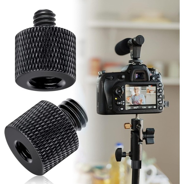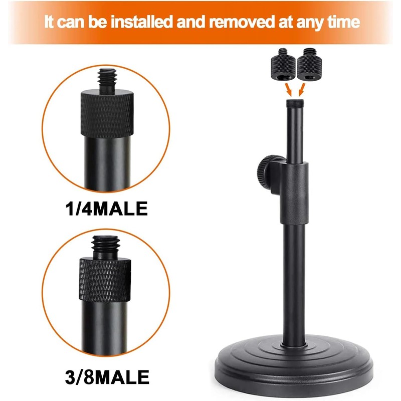 - Product Content: We offer you 2pcs mic screw adapter thread, including: 1/4" male to 3/8" female and 3/8" male to 1/4" female adapter. Fits with most microphone stands, 3/8" jack fits standard mic mounts, 1/4" male screw fits mic stands or cameras with a tripod screw adapter. 2 models meet your replacement need, saving your time and effort.