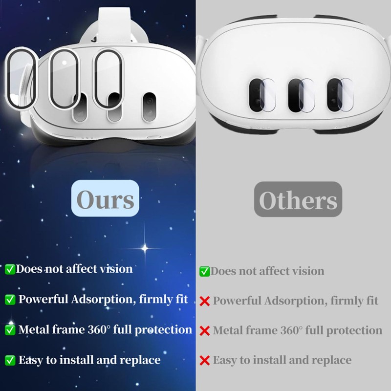 - What's included: 2 pack front camera lens protector and 1 lens protector cover included, designed for Meta Quest 3 VR Headset. 24 hours customer satisfactory service