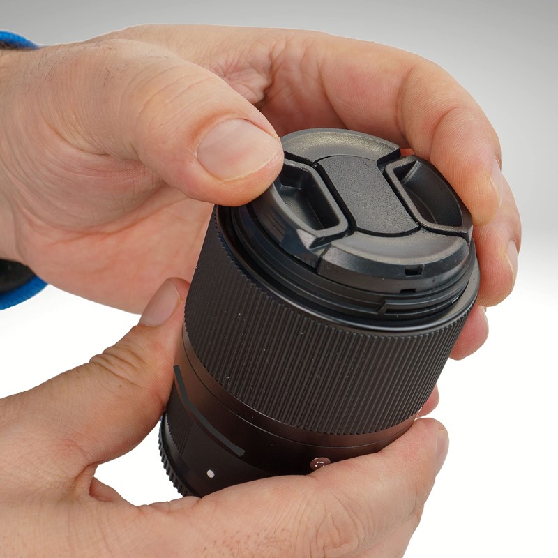 The diameter 67 mm lens cap has an integrated locking mechanism for clamping the lid into the front thread.