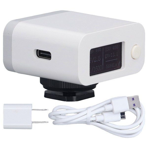 1、[APPLICABLE SCENES] Suitable for equipment with insufficient space on the left side of cold shoe or hot shoe. 2、[SHUTTER PRIORITY] The camera light meter adds a shutter with priority measurement mode, with a wide range of applications. 3、[45° AVERAGE METERING] 45° average metering method, reflective type, can also be set to incident mode, easy to operate. 4、[CLEAR DISPLAY] The reflection light meter has a 0.96in organic light emitting diode, which can display clearly. 5、[POWER SUPPLY] Built in 300mAh lithium battery and equipped with USB cable, convenient power supply.
