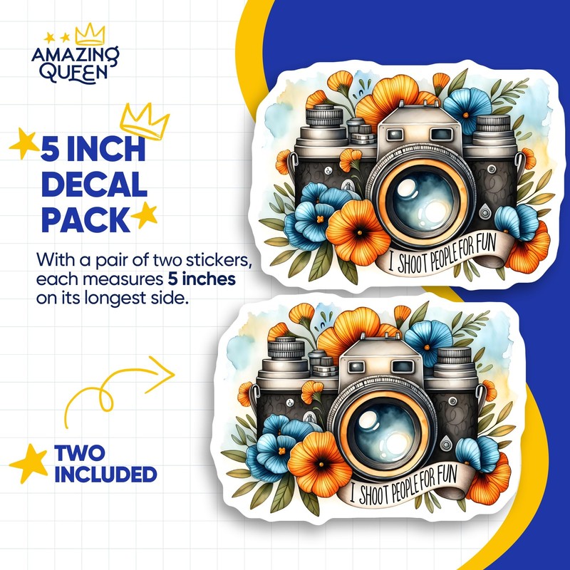 Camera Magnets - Floral Camera Decor - Photographer Magnet - 2 Pack - - 5" Wide Design - Sticks to Fridges, Lockers, Toolboxes & More - Made in USA - AQM2900