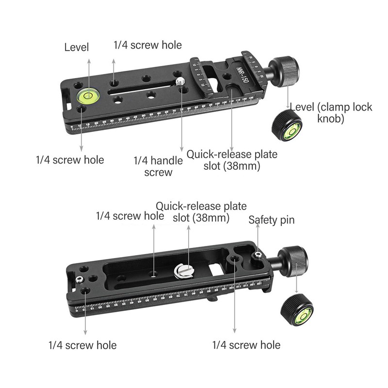 - Multifunctional Design: Equipped with for Arca standard knob clamp, scales, and level, this plate is Flewless for panorama and macro photography. The knob clamp can be stopped at a maximum opening of 50mm.