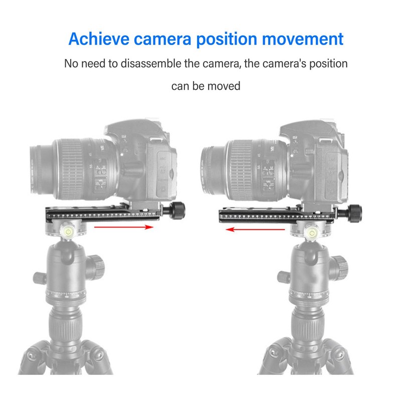 - Quick Release Plate with Bubble Level: The rail nodal slide features standard for Arca 38mm 2 way slot design for easy camera position adjustment. It is compatible for Arca ball head without the need to remove the camera, making it ideal for panoramic and macro photography.