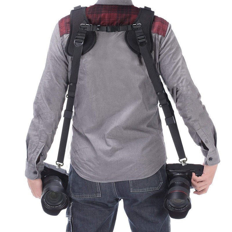 - Esta correa para cámara SLR de doble hombro está hecha de goma de neopreno de 8 mm de grosor, que tiene buena elasticidad y buen ajuste ergonómico. Puede proporcionar un buen efecto de descompresión, llevar la cámara durante mucho tiempo durante el disparo no se sentirá cansado.