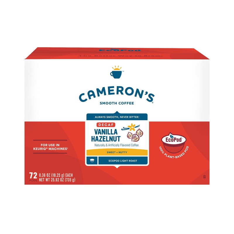 Cameron's Coffee Single Serve Pods, Decaf Vanilla Hazelnut, 72 Count (Pack of 1)