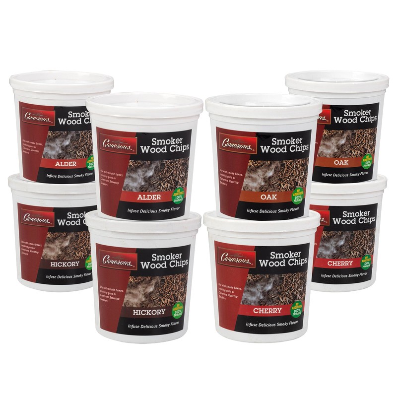 - Value Pack Variety Gift Set of Alder, Cherry, Hickory, and Oak BBQ Smoker Extra Fine Wood Chips. Ignite quickly and combust completely to create a delicate smokey flavor. Best Selling Gift Pack great for Father’s Day, Memorial Day, Summer Barbecue Cookouts, 4th of July, and more!