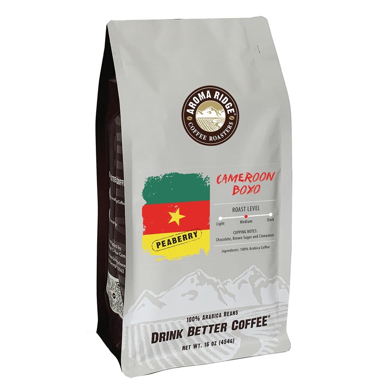 Aroma Ridge Cameroon Boyo Peaberry Coffee, Freshly Roasted in USA, Whole Bean, 16oz