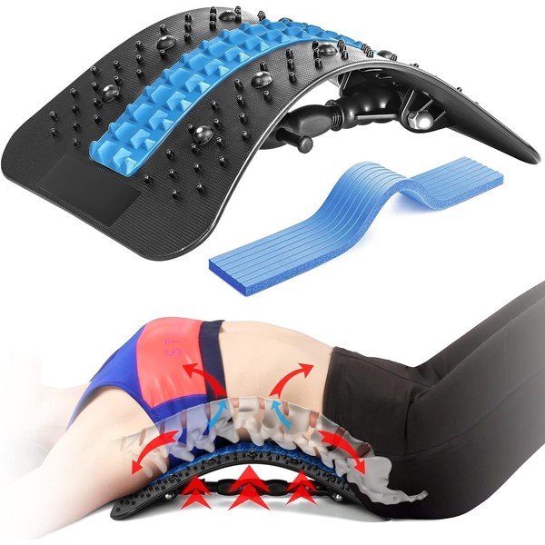 - 【Effective Acupressure Massage】The arc of the back massage stretcher has 10 magnetic points and 112 plastic needles that provide an acupuncture effect through deep pressure on specific acupuncture points. The back massager helps activate the natural healing response and improves blood circulation, giving you complete relief from back pain, spinal pain, muscle pain and more.
