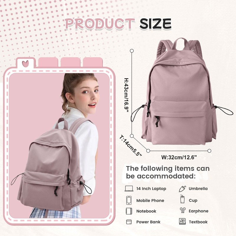 - ✅ 【EASY TO ORGANIZE】This cute back pack features one main zipped compartment, One zipped front pockets and two side pockets. The main compartment provide enough room no matter if it's a day trip or a week long journey. Two separators in the main compartment are convenient enough to help you further organize things. The front pockets are good for holding small accessories and for easy access. Two side pockets are good for holding water bottles and umbrellas.