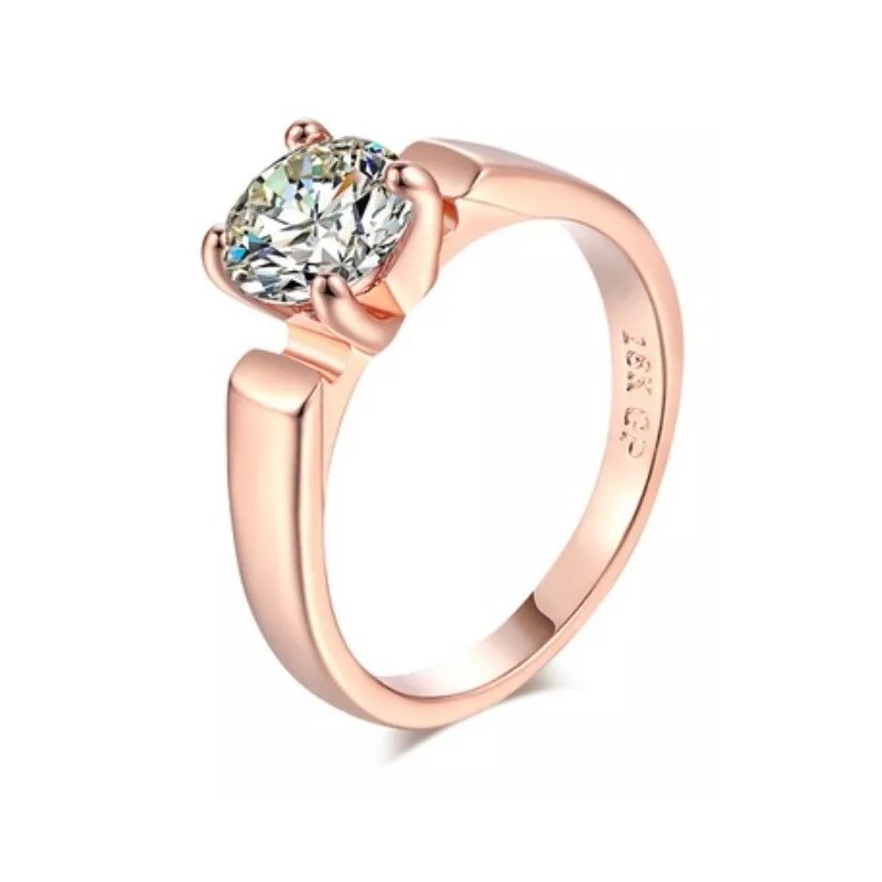 Camimi Anillo Compromiso Oro Rosa Gran Zirconia Cuadrada Premium
