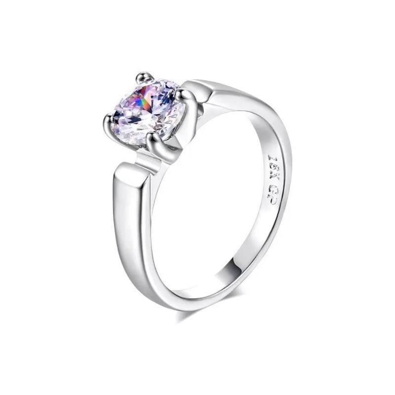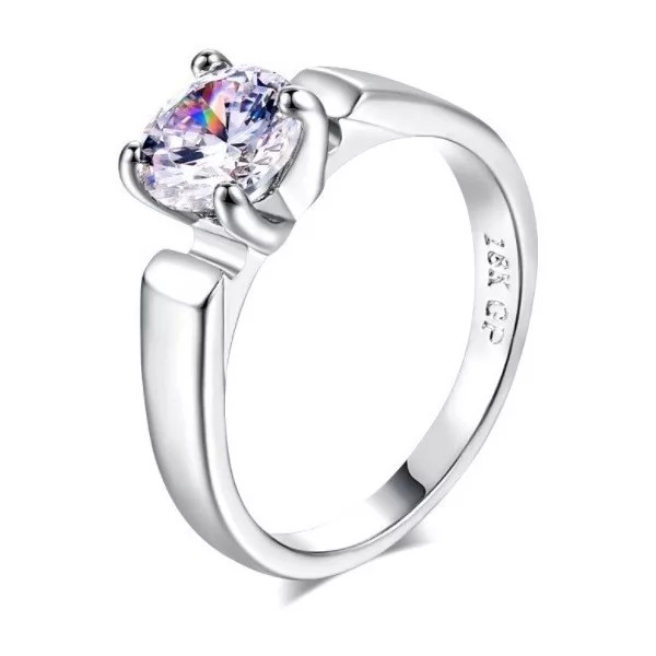 Camimi Anillo Compromiso  Plata Gran Calidad Chapado En Oro Blanco