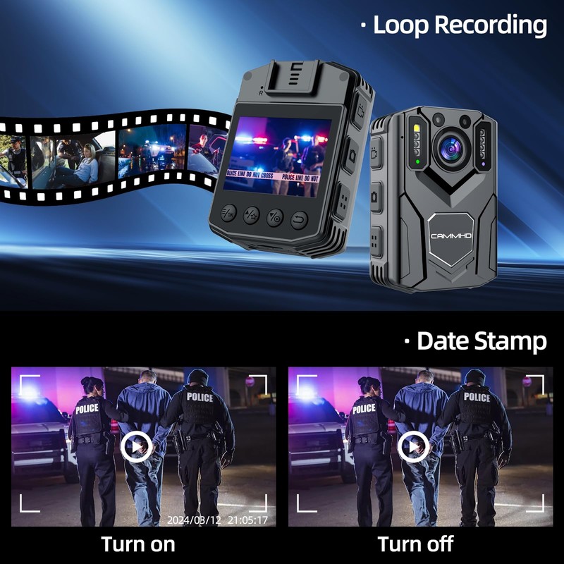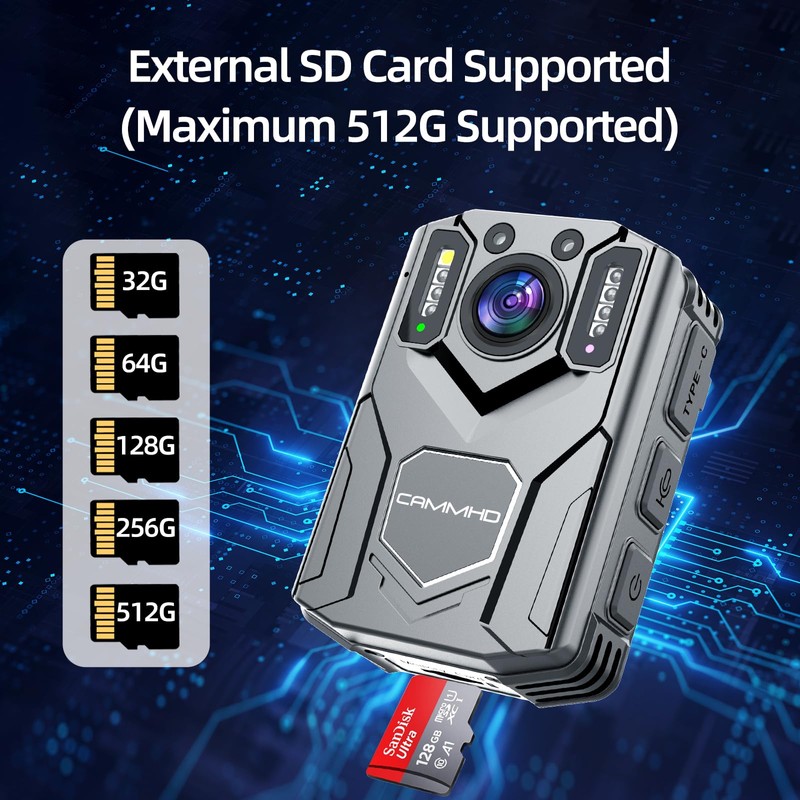 CAMMHD 2K/1440P HD 128G Body Cam 8-10 Hours Recording Body Cameras with Audio and Video Recording Body Cam with Extended Memory Card for Police/Hiking/Meeting