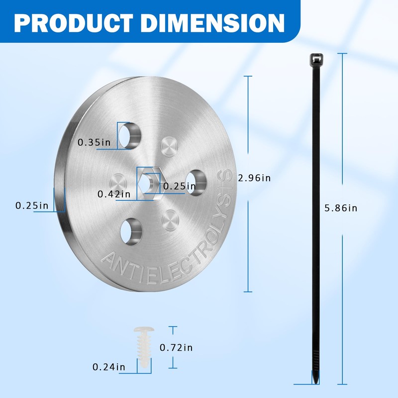 - ✅【Cathodic Protection】: The method of protecting other metals in the pool by using zinc sacrificial anodes is called cathodic protection. Zinc has a higher active voltage than other metals, and oxidation and reduction occur preferentially on the zinc anode, thus effectively protecting other important metal structures in the pool