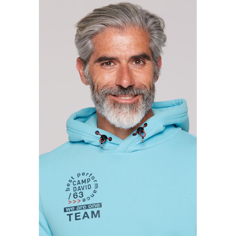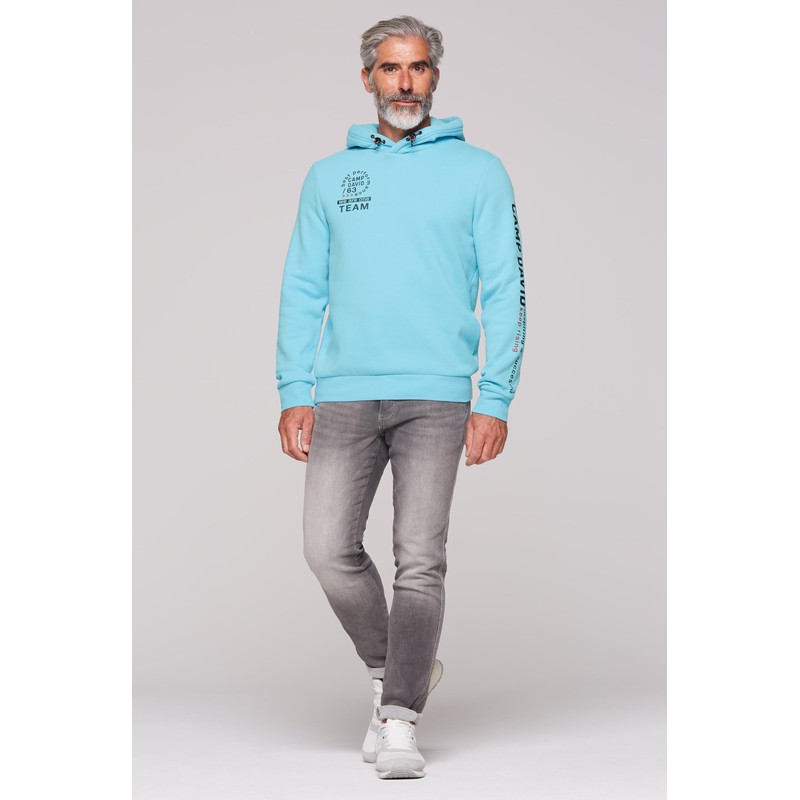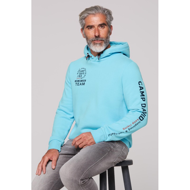 Camp David Men's Hoodie with Rubber Artwork, Summer Aqua, 4XL