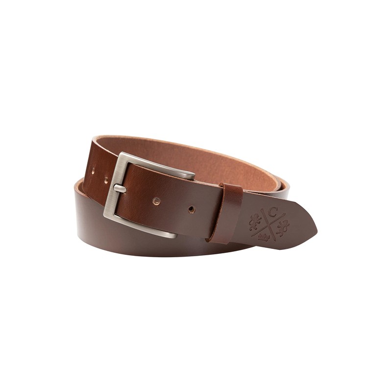 Camp David Men's Leather Belt with Matt Pin Buckle, brown