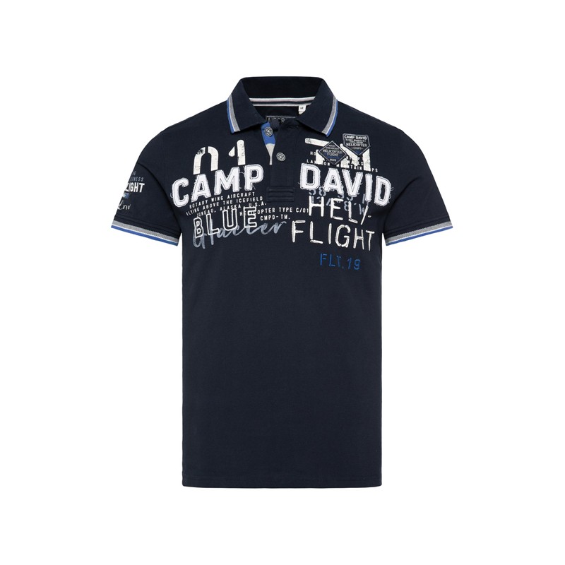 Camp David Men's Pique Polo with Label Appliques, Navy blue