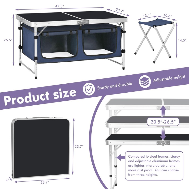 - Multiple Uses: Use this foldable table as a grill table, picnic table, or to hold your lantern and other camping gear. It's suitable for all your outdoor activities.