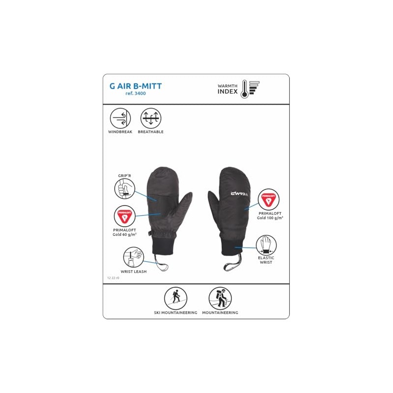 CAMP G Air B-mitt Primaloft Breathable Medium Weight Primaloft Mitt, Size XL, Black