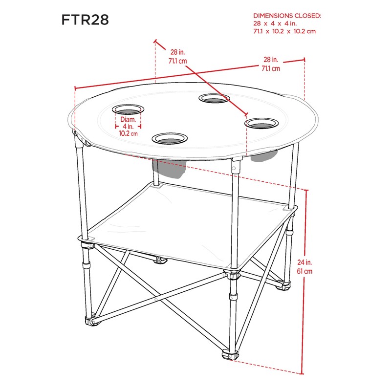 - EASY TO STORE AND TRANSPORT: Lightweight base folds like a quad chair to make it easy to transport to your favorite outdoor spots, and the fabric-covered tabletop snaps on and off for compact storage