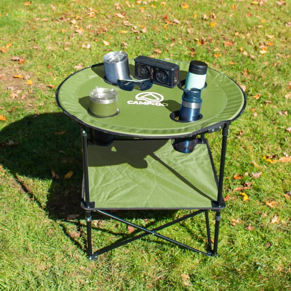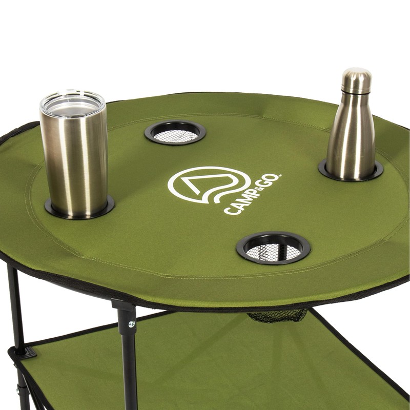 CAMP & GO 28" Round Lightweight Fabric Portable Folding Beach Cupholders Table, Green