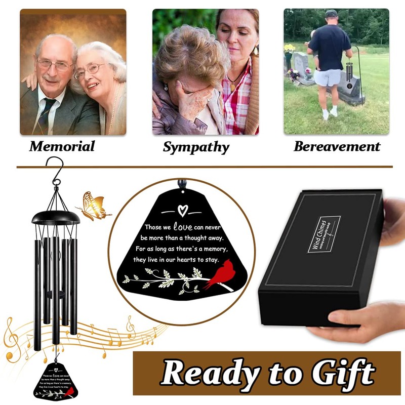 - ♬♪【Regalos de duelo】Muestra tu amor y condolencias】Este carillón de viento negro está empaquetado en una hermosa caja de regalo, cada tubo de campana de viento está envuelto con una película protectora, dale a nuestras campanillas de viento de duelo para expresar tu amor y condolencias desde el corazón, perfecto para regalos de duelo por condolencias, recuerdos, condolencias y funerales. Las grandes campanillas de viento se pueden colgar en el jardín exterior, patio, porche, ventana o incluso junto a lápidas.