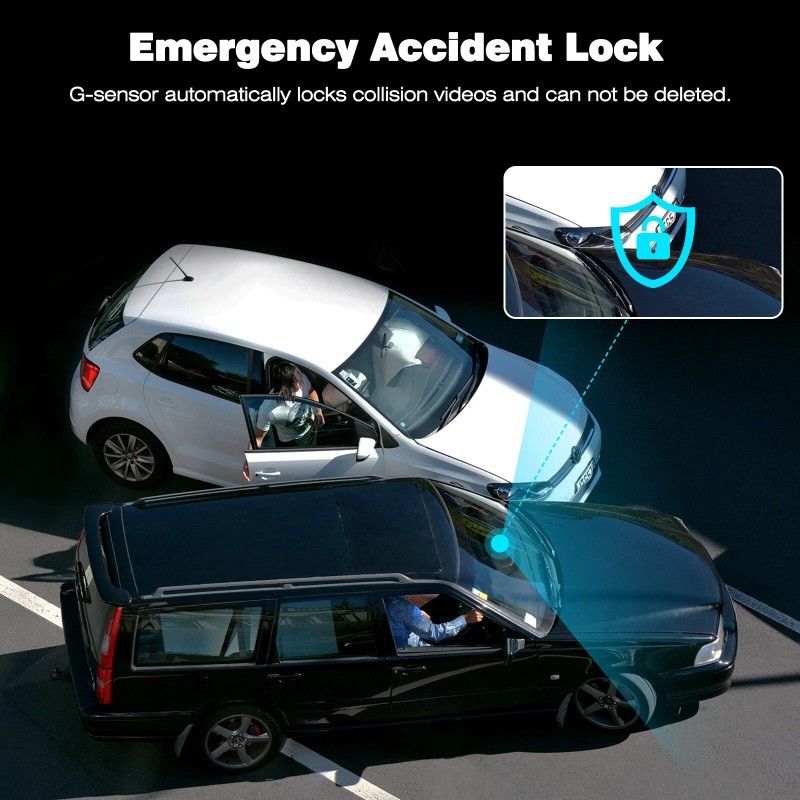 G-Sensor: When the built-in G-Sensor detects a sudden collision, it will automatically lock the current video, avoiding the video being overwritten in loop recording mode and protecting important evidence. Sensitivity can be adjusted. (We recommend to set it to ‘Low’)