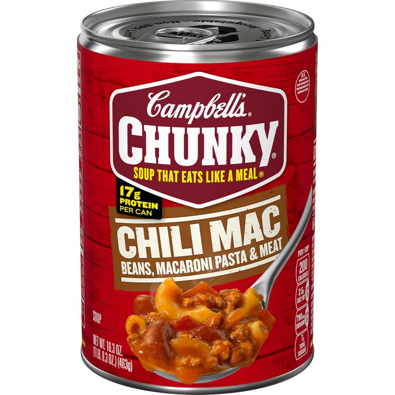- Campbell's Chunky Soup: One 16.3 oz can of Campbell’s Chunky Chili Mac