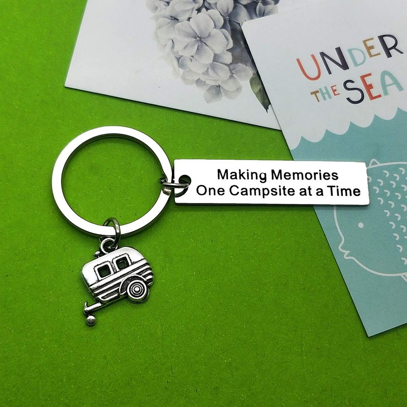 • 🚙 Campers Keyring Gift :Engraved with "Making Memories One Campsite at a Time"It is a simple way to create a celebrating, joyful and inspirational environment. Perfect decor for camping rv. Can be given to relatives or friends.
