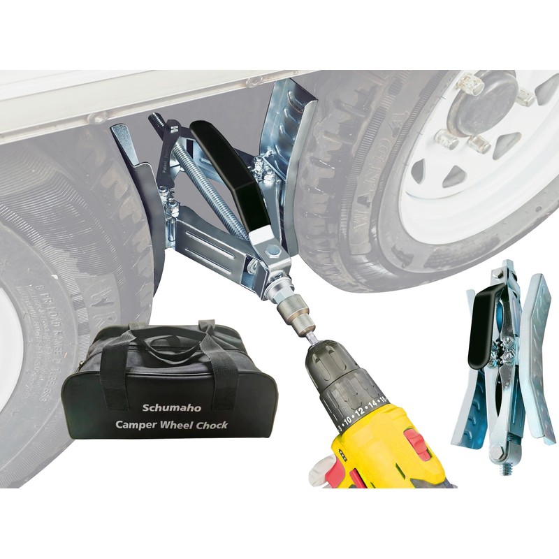 - MORE STABLE: And once it's on, it keeps your camper trailer or RV rock solid. The lock chock stabilizer stops tire shift by adding some extra stabilization to the two tires.