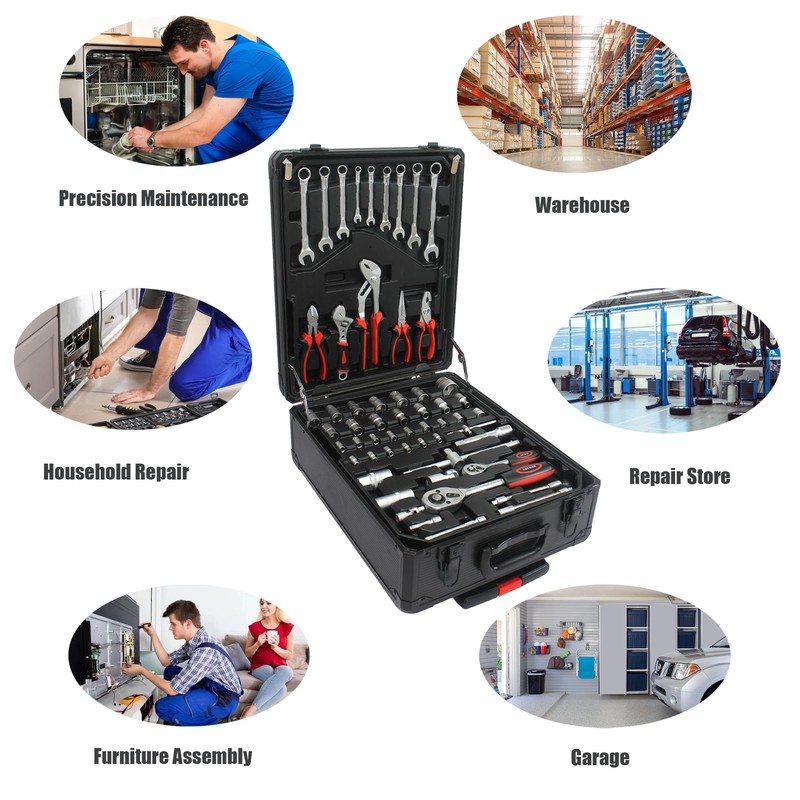 - 🔨 【High Quality Steel】The tool kits are made of high-quality steel and finished in high-polish chrome. The complete tool box set is refined from sturdy forged steel, and the tool surface is chrome-plated, providing precise and flawless work.