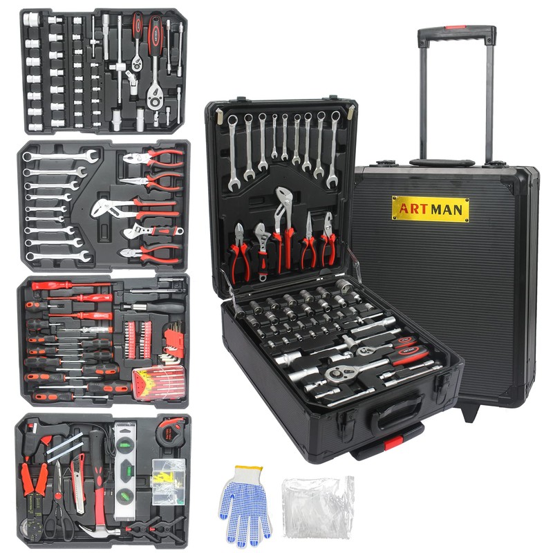 - 🔨 【Portable Tool Box】This household hand tool set is a trolley case which made of aluminum alloy. The tool box on wheels looks like a suitcase and can be pulled anywhere freely. The tool kit sets are portable and lightweight.