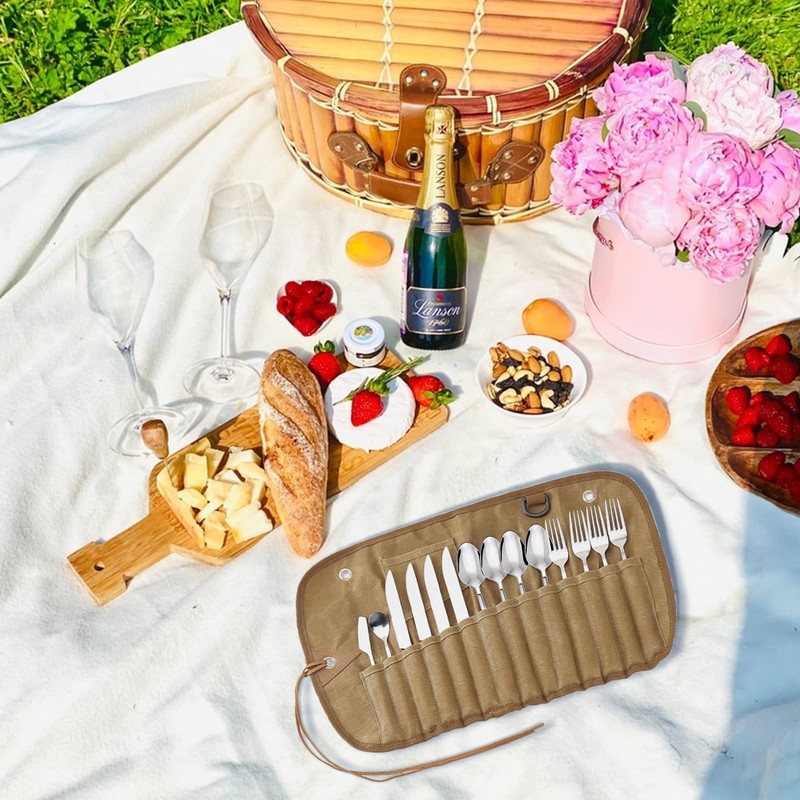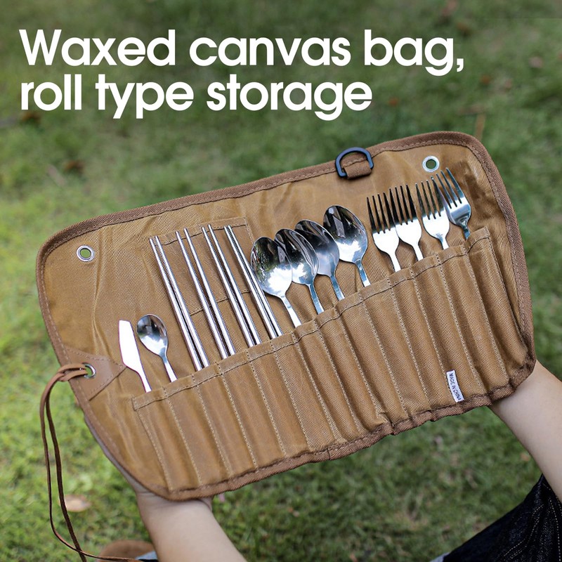 - 【High Quality Material】The camping cutlery bag is made of high quality canvas fabric,which is waterproof and wear resistant,the cutlery storage bag can protect your camping utensils from damage and accidental drops.