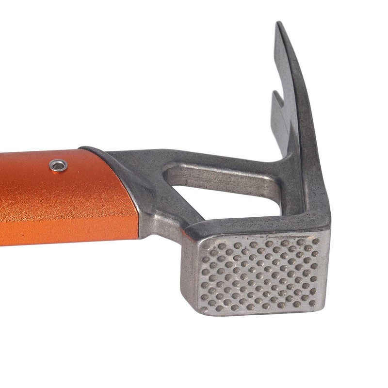- Stainless Steel Tack hammer, This camping hammer features a stainless steel with a textured design that ensures a large and force area.