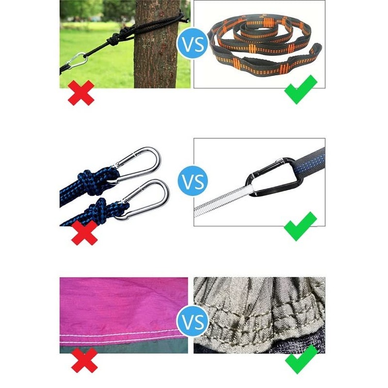 • Easy to Install: The adjustable strap is 2m long. It is definitely a breeze to lock the hammocks firmly in place without causing any harm or damage to the trees.