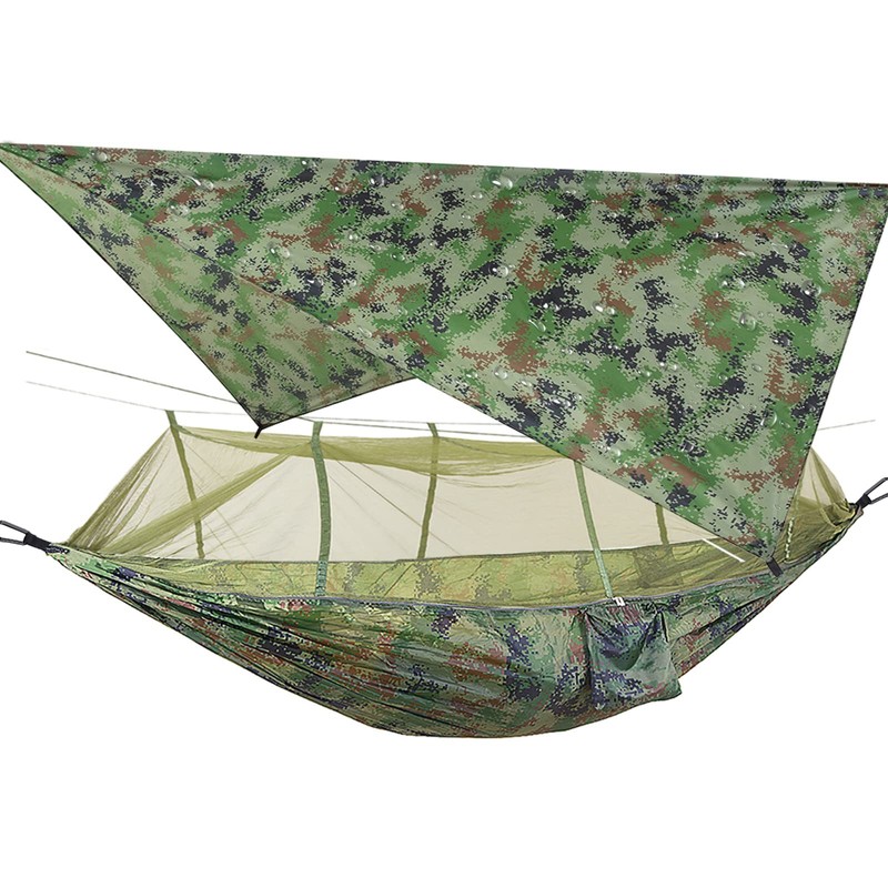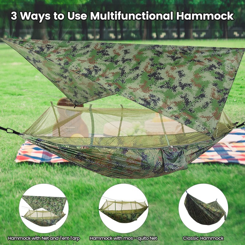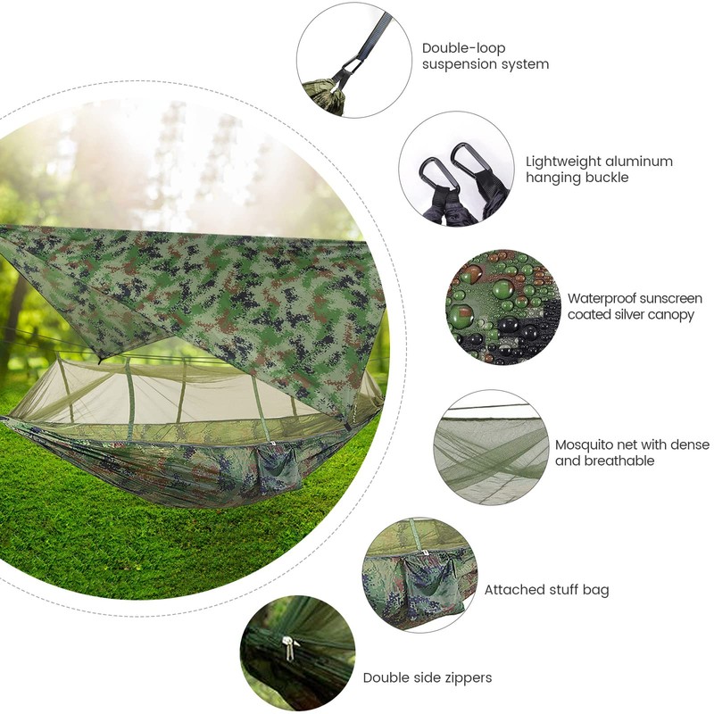 Camping Hammock with Mosquito Net & Rainfly Tent Tarp & Tree Straps Portable 2 Person Nylon Hammock Tent for Outdoor Camping Hiking Backyard Travel Backpacking (Camouflage)
