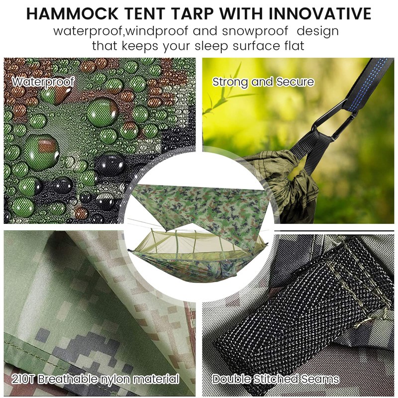 1. MIFXIN camping hammock with mosquito net & Rainfly Tent Tarp can provide you full protection in sun or rain days.