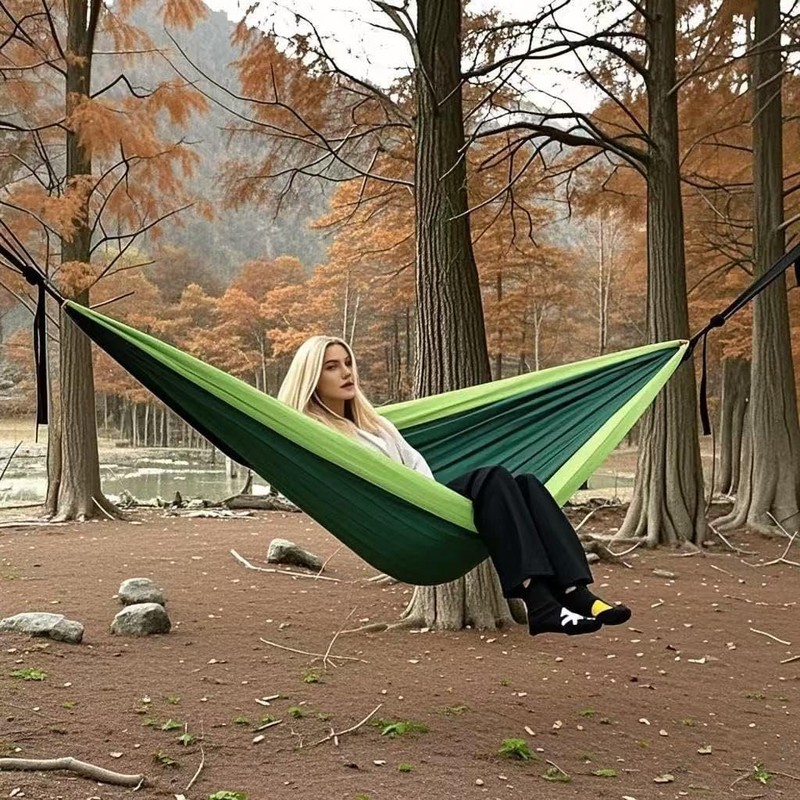 - 1. PREMIUM COMFORT & DURABILITY: Experience cloud-like relaxation with our 210T parachute nylon hammock, featuring triple interlocking stitching for superior strength. Soft yet ultra-durable, it resists fraying, tearing, and dirt while drying quickly—perfect for all weather conditions.