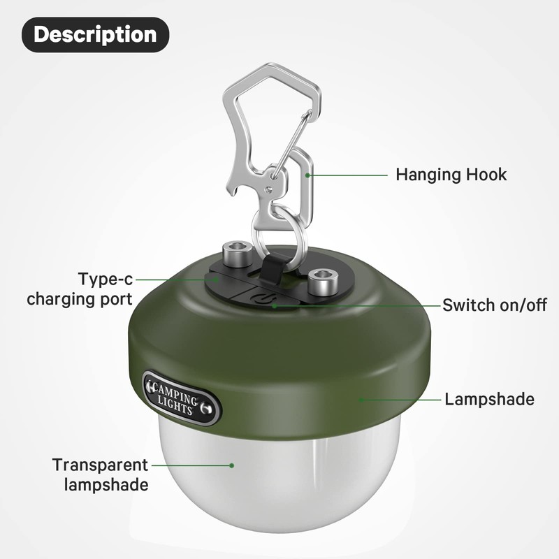 Hanging Hook and Compact - This camping lantern comes with a metal hook for hanging from your backpack, tent, belt or anywhere you wish. Moreover, this tent light's pocket-sized design makes it perfect for camping, fishing, emergencies and more.