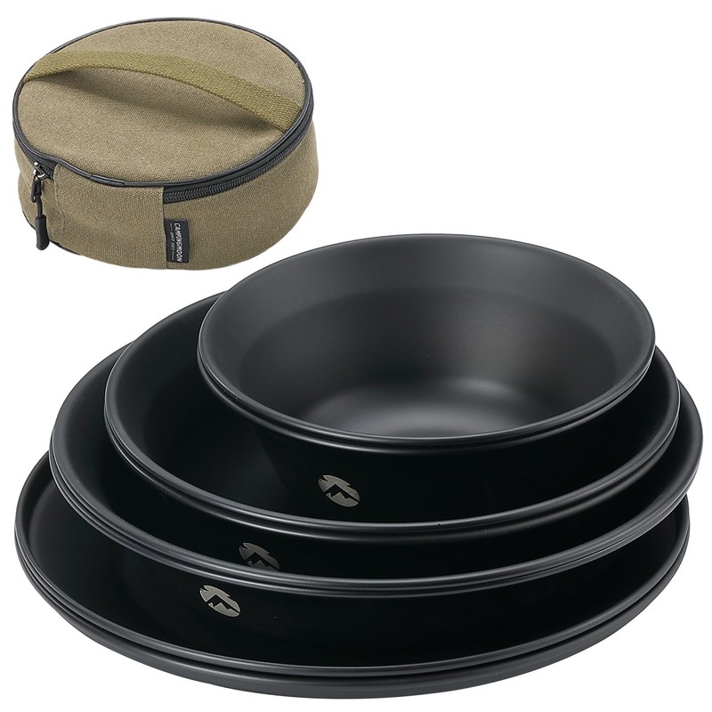 CAMPING MOON BKS395-2S Tableware, Camping Plate, Stainless Steel Tableware Set, 8 Pieces, with Canvas Case, Black Gear