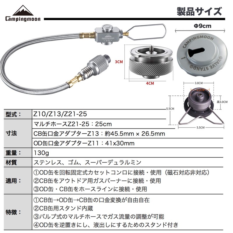 - Size: (1) Multi-hose Z21-25/25 cm, (25 cm), (2) CB can nozzle adapter Z13/approx. 1.6 x 1.2 inches (40 x 30 mm), (3) OD can nozzle adapter Z10/approx. 25.0 x 1.2 inches (55.0 x 30.0 mm), 4) OD can release stand Z2 inches (1 mm)