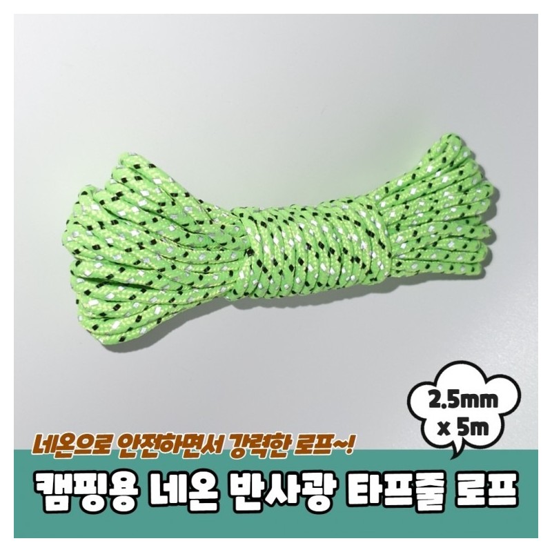 Camping neon reflective tarp rope 2.5mm x 5m 4ea