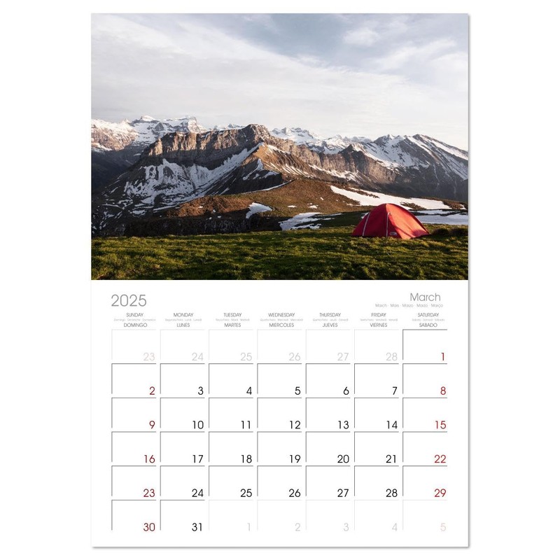 • DESIGN - 12 unique pictures, large monthly grid for planning with dates in 5 languages, including Spanish and French. 14 Month Calendar (Jan 2025 - Feb 2026).