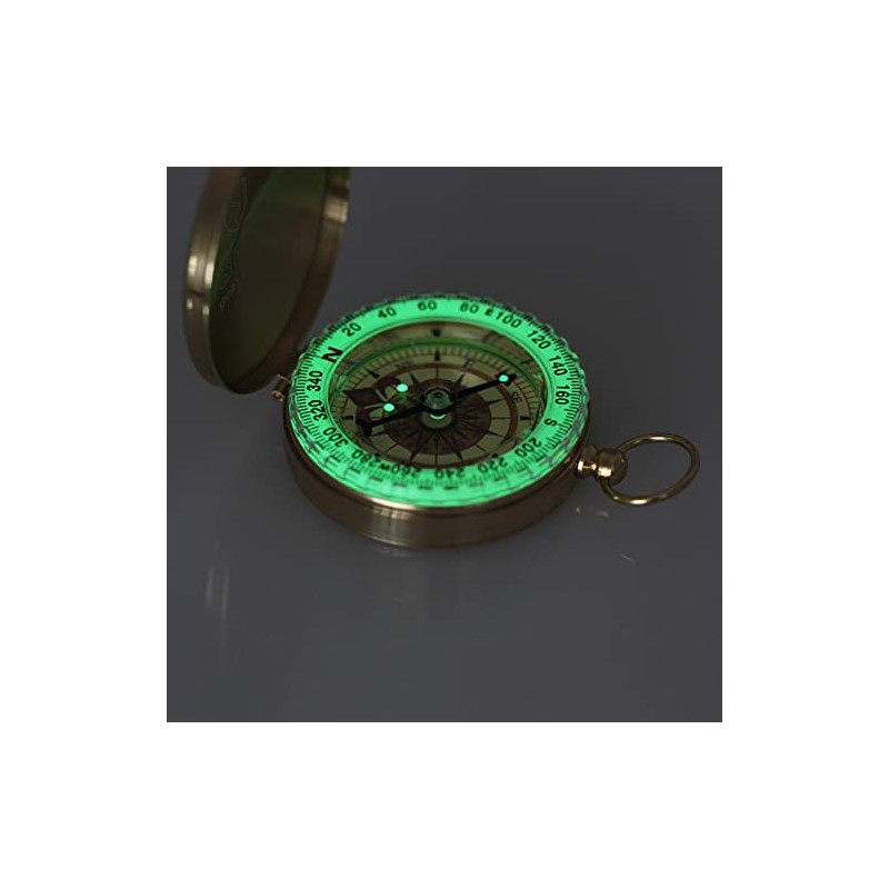 luminous copper Compass: all copper material, luminous, can open and close the cover, hanging rope ring,