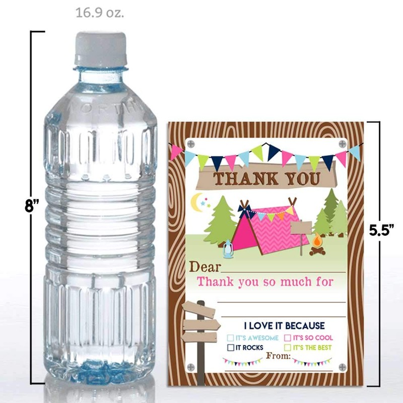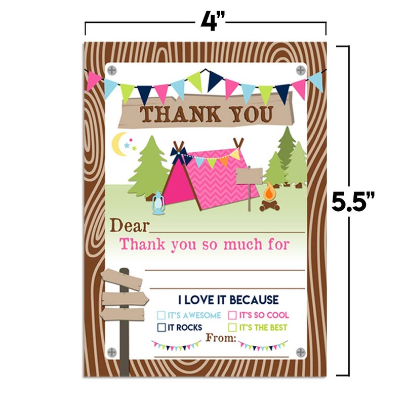Camping Themed Thank You Notes for Girls, Ten 4" x 5.5" Fill In The Blank Cards with 10 White Envelopes by AmandaCreation