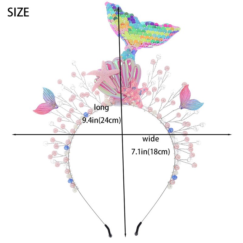 - Mermaid Headband is made of sequins, simulated shell starfish, natural pearl crystal and acrylic fish tail, 100% handmade.
