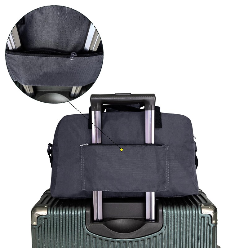 - Our under seat travel bag is designed as a lightweight folding travel duffel bag for your belongings, ideal for cabin areas where space is limited and has dimensions to fit carry on limits for most airlines. Our small underseat cabin bag has a shoulder strap and carry handles for easy transport, as well as a fixed fabric strap on the back that slips over the telescopic handles of a suitcase, so can be attached and carried on your main case.